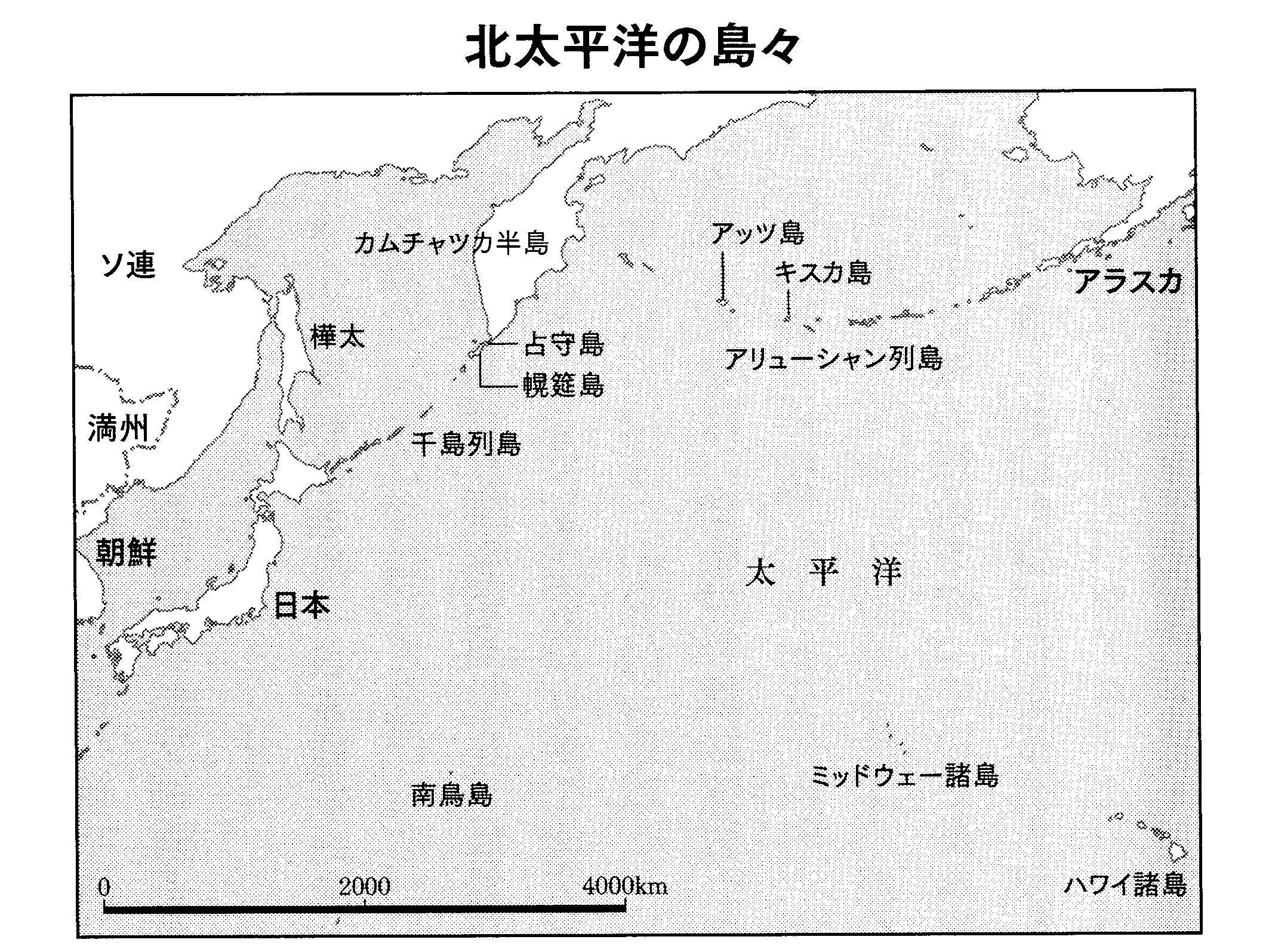 北太平洋の島々(上原卓 著「北海道を守った占守島の戦い」 p43 より)